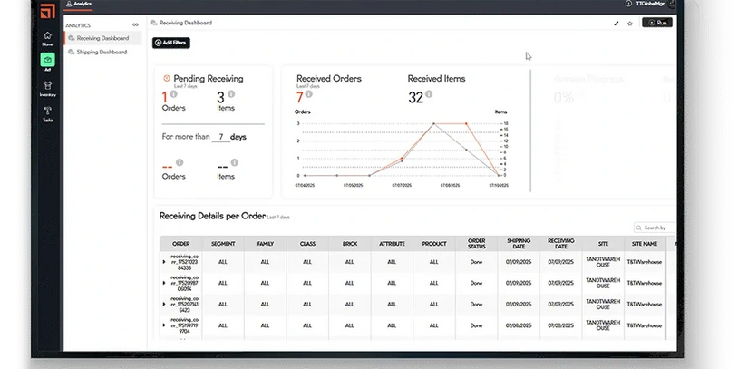 Receive RFID- or barcode-labeled items with blind receiving to accelerate intake and reduce manual errors.